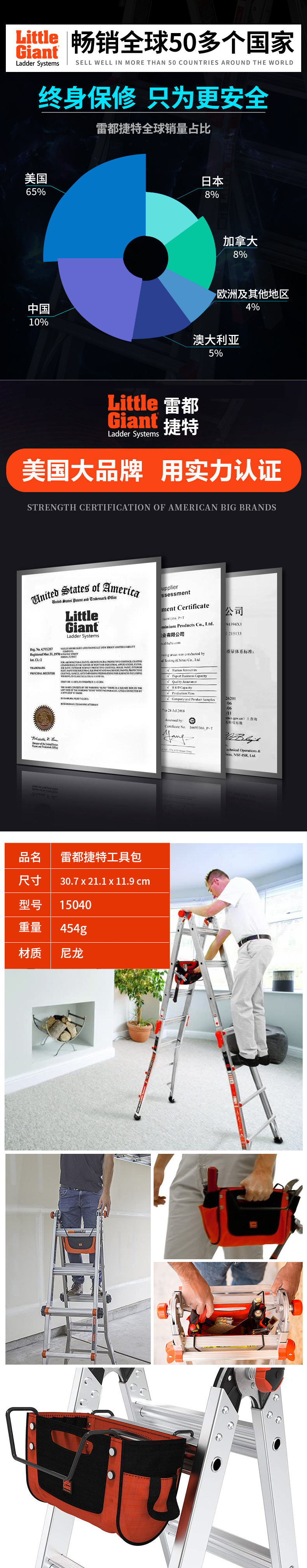 LittleGiant雷都捷特小巨人梯子伸縮梯配件工具袋工具包